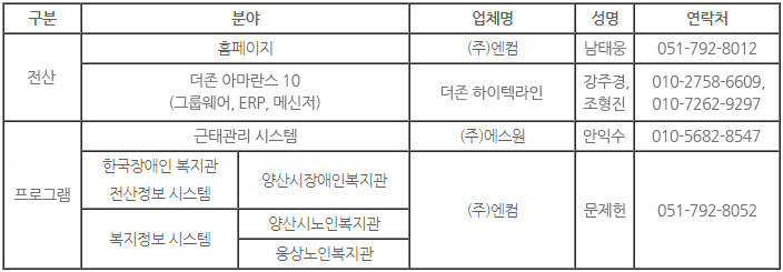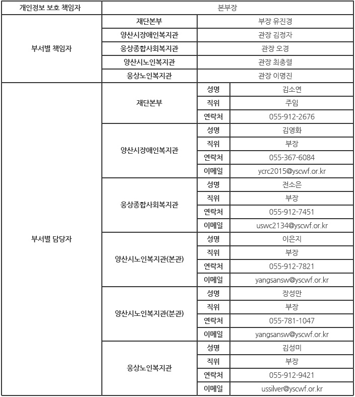 - 개인정보를 제공받는 자 : 양산시복지재단 경영평가 기관